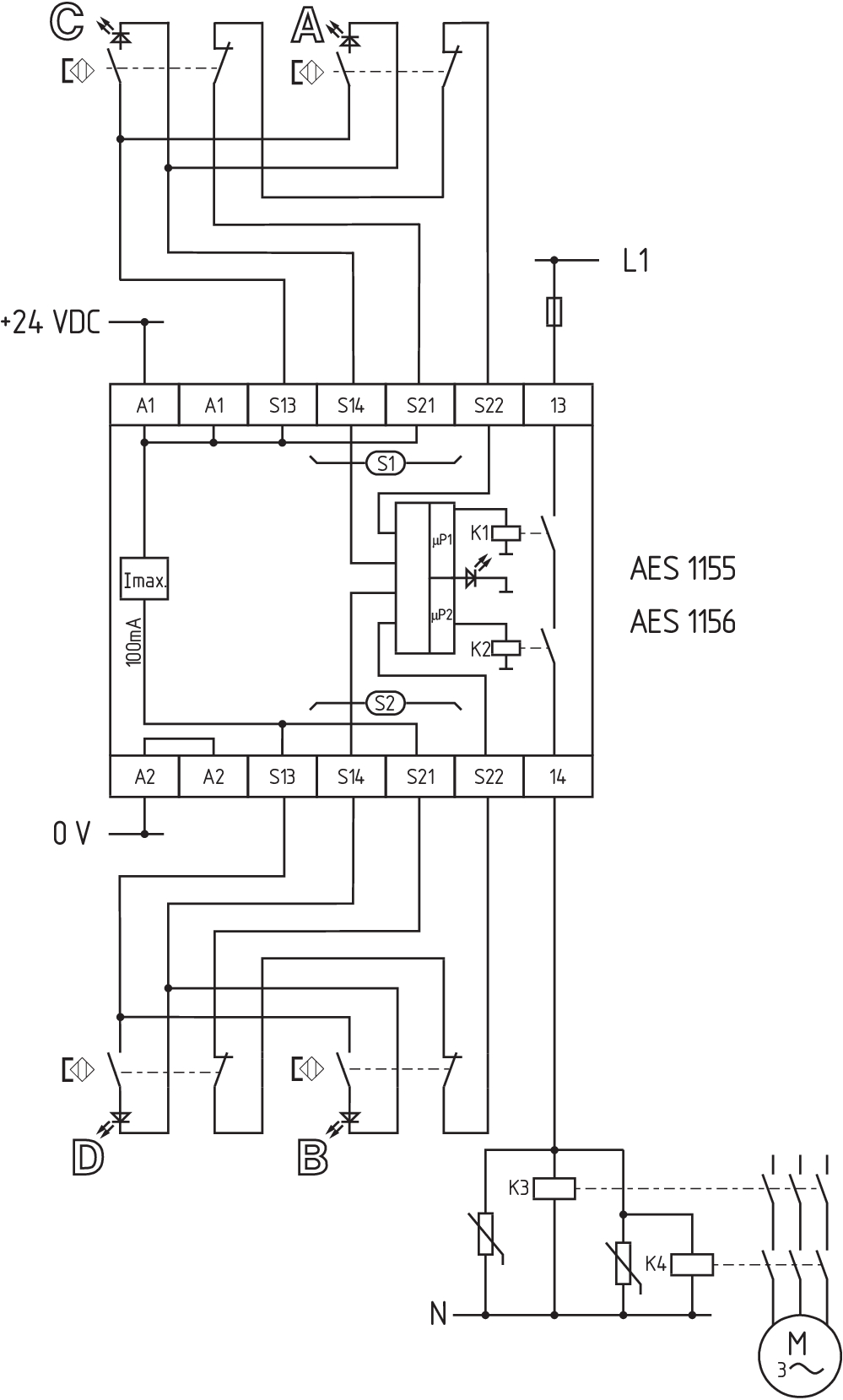 - 1 Sicherheitskontakt, STOP 0