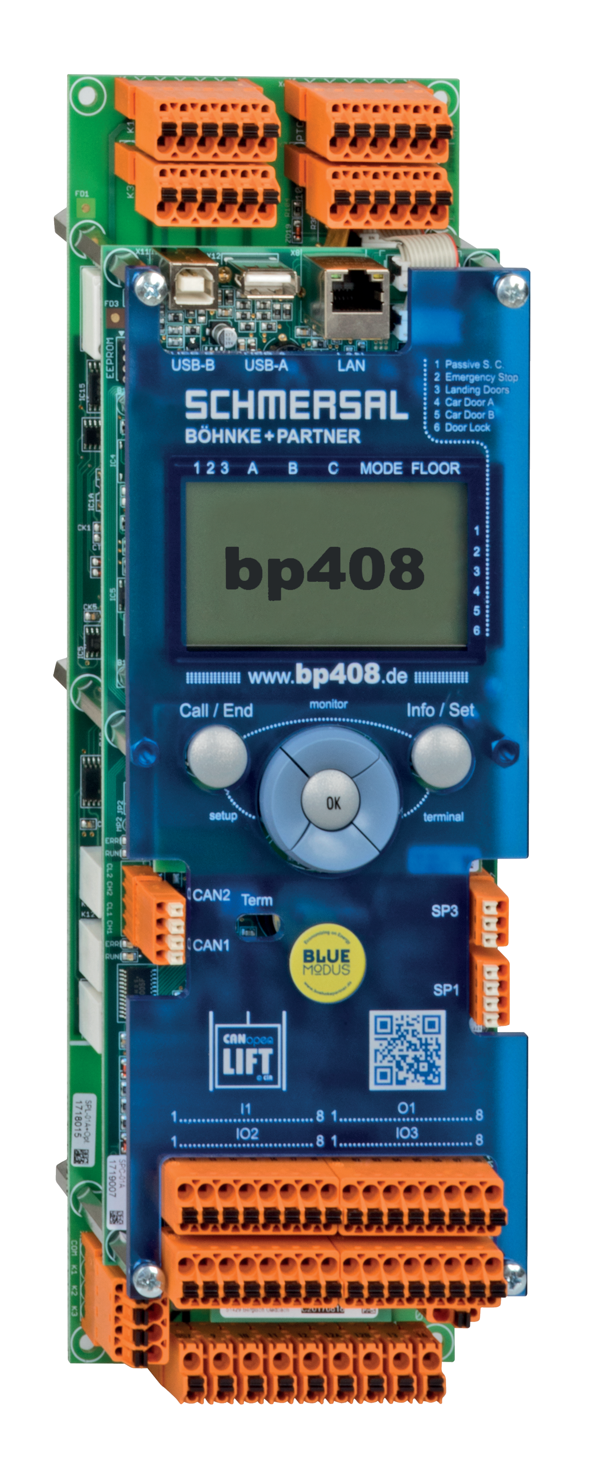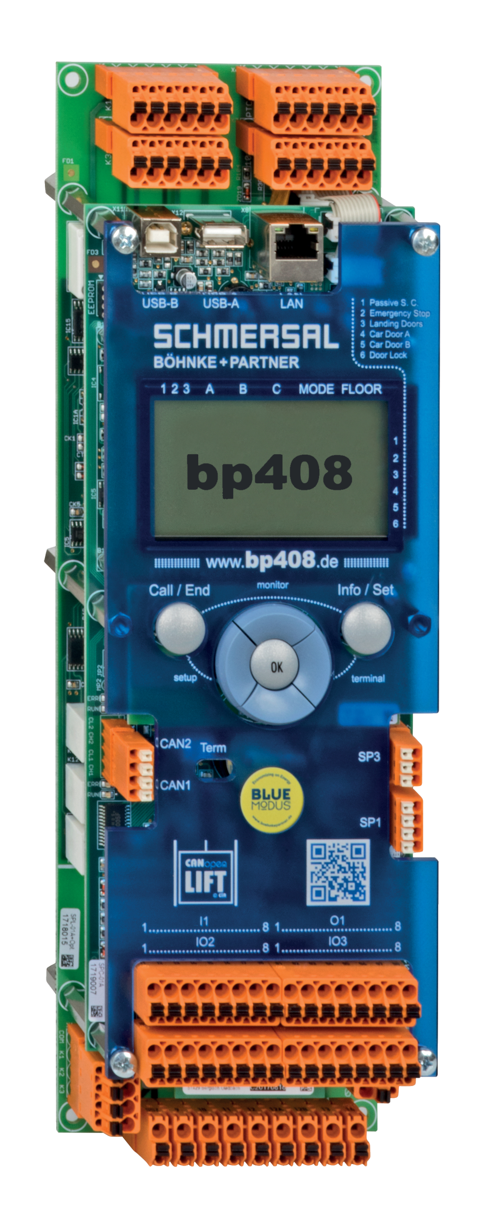 - Schnittstellen: CANopen Lift, USB, Ethernet, RS 485 (DCP) und RS 232