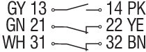 Darstellung der Kontaktsymbole bei geschlossener Schutzeinrichtung. Die Kontaktbelegungen bei den Ausführungen mit oder ohne LED sind identisch. |