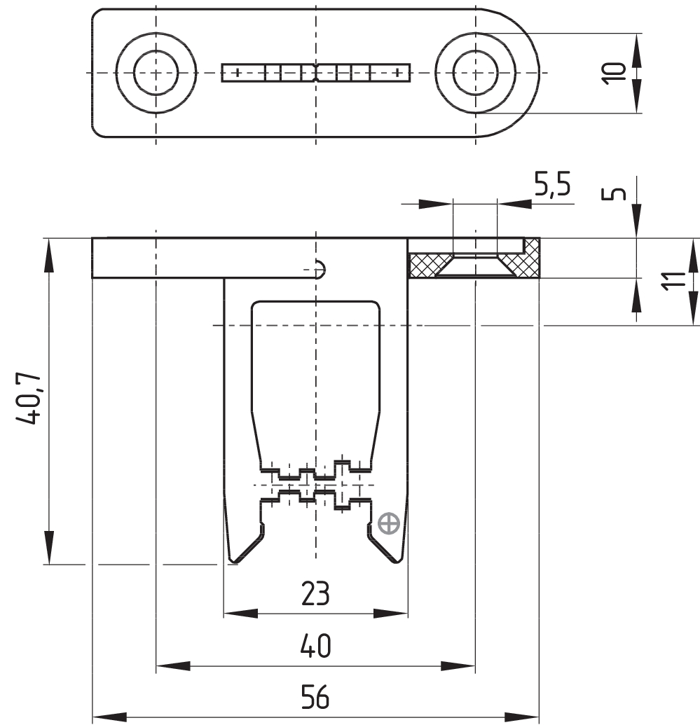 - Langlöcher zum Einstellen, Rundlöcher zum Fixieren
