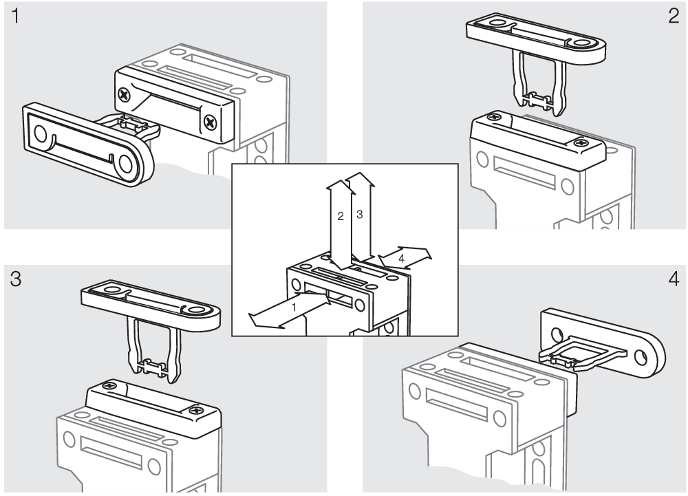 Drehpunkt des Scharniers und Oberkante des Sicherheitsschalters zuzüglich 11 mm müssen eine Ebene bilden kleinstmöglicher Betätigungsradius bei drehbaren Schutzeinrichtungen 250 mm Der Betätiger ist nicht einzeln lieferbar. |