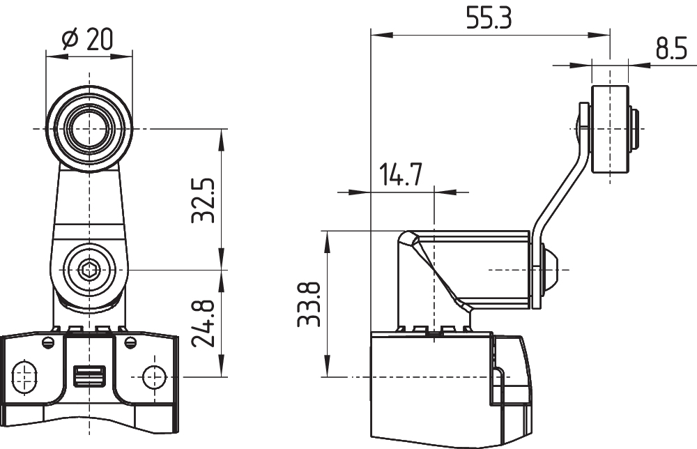 | H300 | Roller lever - plastic roller Ø 25 mm |