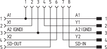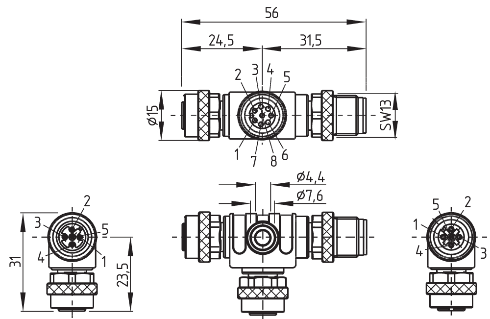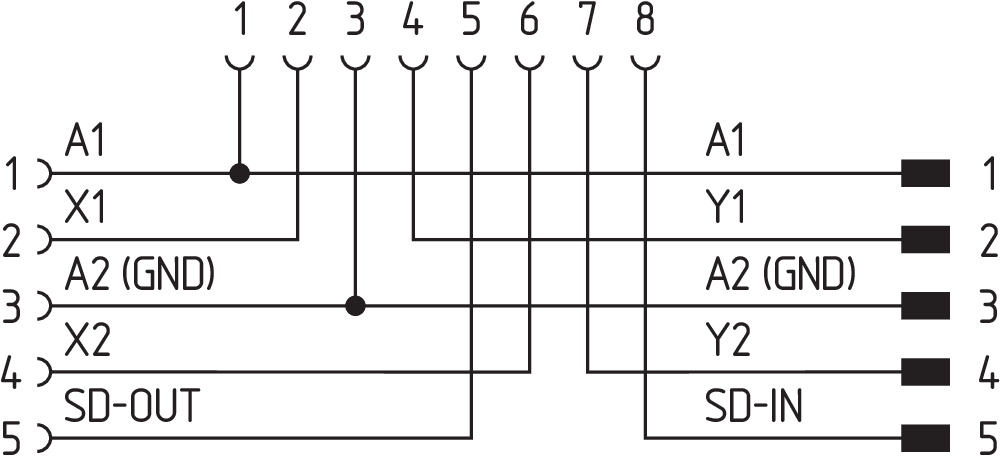 1 x Male connector, 5-pole 2 x Female connector, 5- and 8-pole |