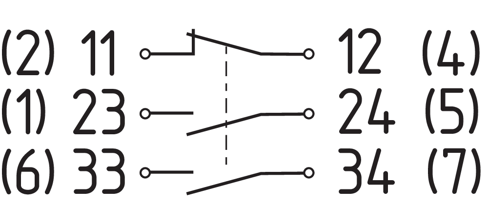 2 NO contacts, 1 NC contact |