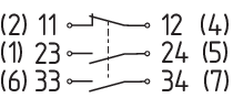 | T21 | Action dépendante 2 contacts NO / 1 contact NF |