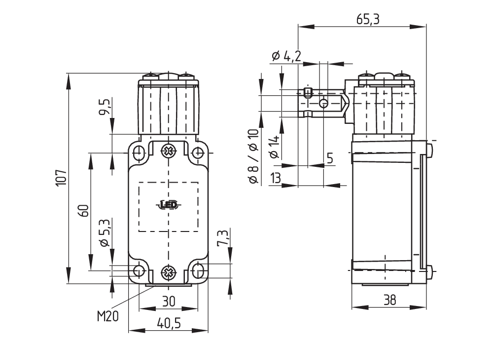 - 40,5 mm x 107 mm x 65,3 mm