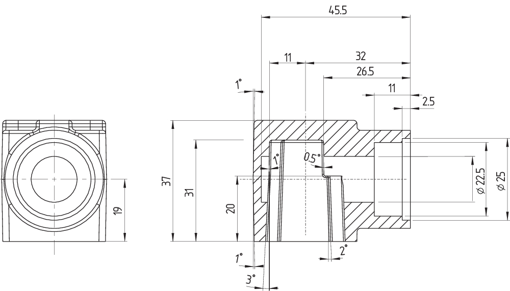 Desenho dimensional componente básico