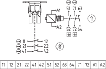 The 24 V are led internally to contacts 13 and 63. The corresponding signals of the LED display can also be tapped at terminals 14 or 64.